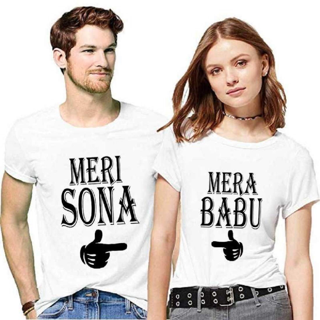 Buy Yfb Men And Women Round Neck Printed Reguler Fit Half Sleeve White T Shirt Mera Babu Meri Sona At Amazon In